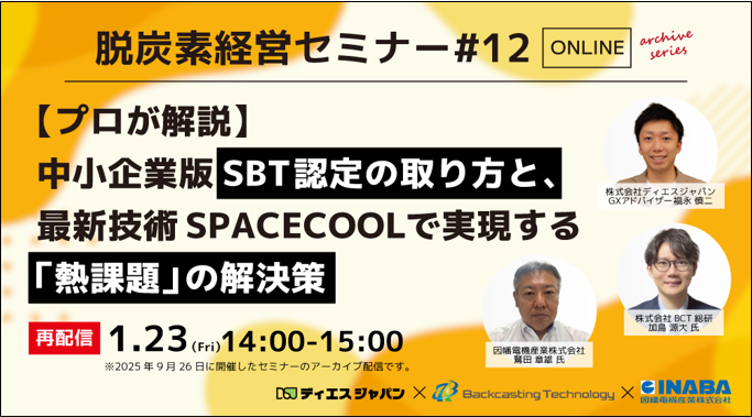 インフォメーション 【無料】【アーカイブシリーズ】中小企業版SBT認定の取り方と、最新技術SPACECOOLで実現する【熱課題】の解決策