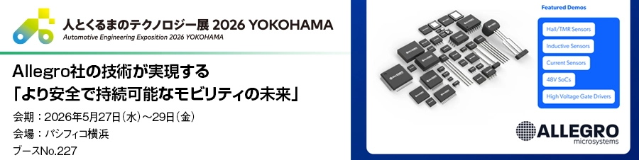 Allegro MicroSystems社は、5月27日(水)〜29日(金)に開催される国内最大級の自動車技術展「人とくるまのテクノロジー展 2026 YOKOHAMA」に出展いたします。