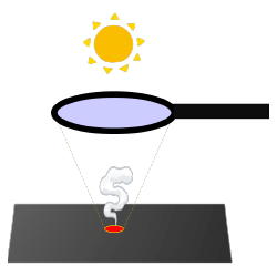 上記の既存工法と明確に異なる点は“熱源がレーザー光である”という点です。従来工法では電気的な短絡熱を熱源として金属を溶融させていたのに対して、レーザーは光エネルギーが母材金属の表面で熱吸収による発熱で母材を溶融します。それはレーザー光の照射後瞬時に表面温度を融点まで高められるほど強力なエネルギーです。身近な例で例えると、虫眼鏡で太陽の光を集めて黒い紙に当てると発熱して燃焼する現象に近い内容になります。