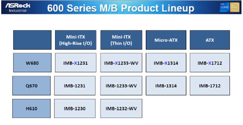 ASRock社では、第12世代プロセサを搭載した多数の産業用マザーボードを取り揃えております。ATX、MicroATX、Mini-ITX規格に準拠した各ボードを下記の通り、紹介致します。