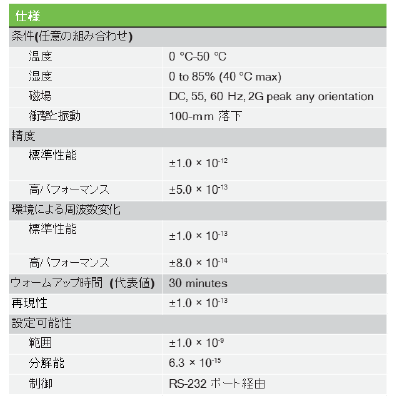 - 環境安定性 ±8.0 × 10-14(あらゆる環境条件下での周波数変動)
