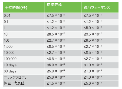 - 長期安定性 高性能に対して≤1.0 × 10-14(平均時間5日間)