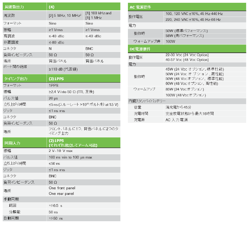 - 前面と背面に容易にアクセス可能な複数の時刻・周波数入出力ポート