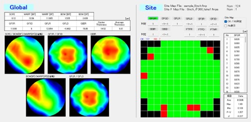 ウェハをカッティングした際の各サイトの厚みムラを測定できます。