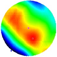 そのため、Dyvoceでは装置内にウエハを3点の支持点上に水平配置して、表面が上向きの状態・裏面が上向きの状態の2つの測定結果から自重たわみを補正して、真値に近いウエハの反り形状・反り量を計測することができます。また、モデルデータを使用することで、表面片面のみの測定でも自重たわみを補正することもできます。