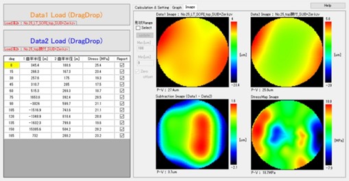 ベアウエハの形状データから、ウエハの持つ応力を解析します。