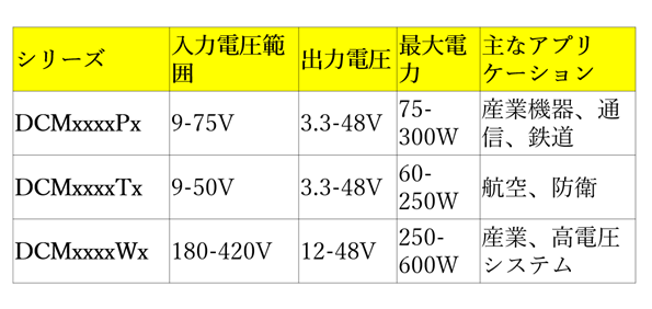 Vicor DCMシリーズは、お客様のアプリケーション要件に合わせて、幅広い製品ラインアップを提供しています。