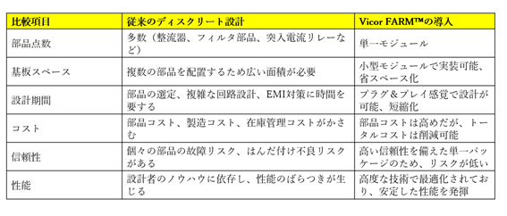 FARM™を導入することで、設計期間の短縮、部品点数の削減、基板サイズの小型化、そして製品の信頼性向上といった多大なメリットを享受できます。これは単なる部品の置き換えではなく、電源開発のプロセスそのものを根本から変革するものです。