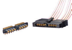 SMPMをベースに、メタルハウジングを設けたWtoW(電線対電線)接続の多芯RFコネクタ・ケーブルです。基板を介さずにユニット間で高周波信号の受け渡しを行うのに適した製品です。