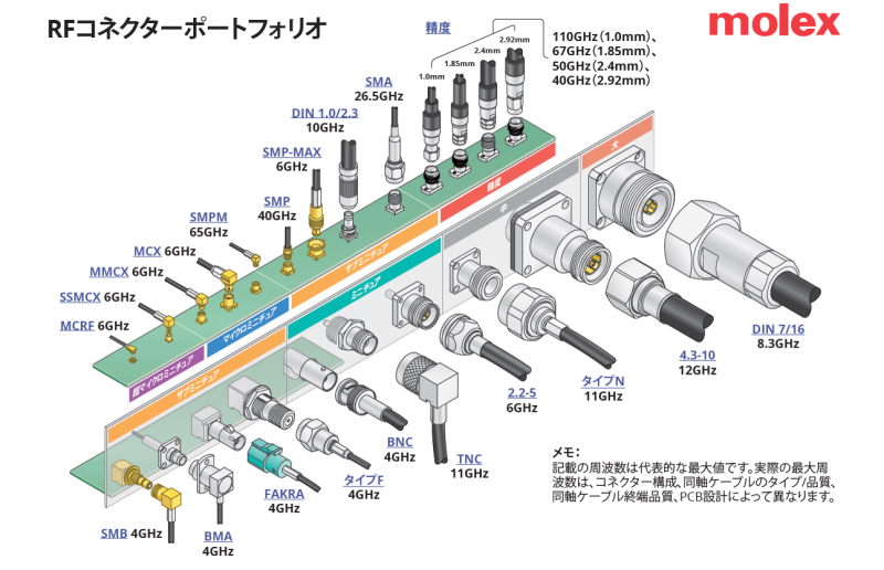 molexでは、ほとんどの規格の製品をカバーしておりますので、同軸コネクタ・ケーブルをお探しの際は、弊社丸文までお問合せください。