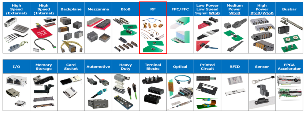 molexでは、RF信号を流す芯数(port数)や特性の異なる製品を複数取り揃えしております。