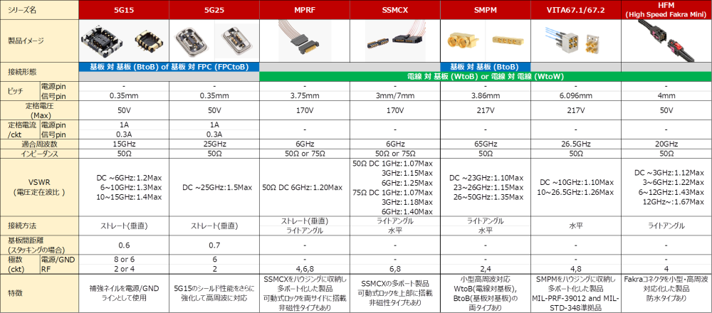 5G25 製品特徴(Molex社 製品データシート抜粋)