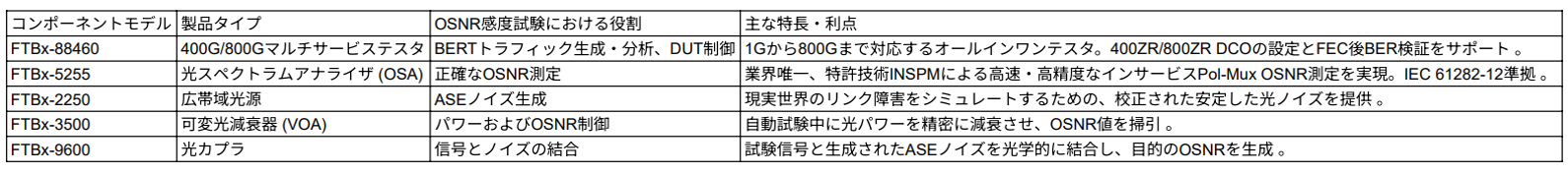 表1:EXFOコヒーレントテストソリューションの構成要素