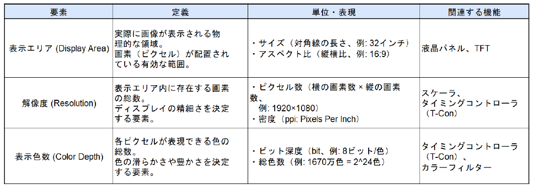 ディスプレイ表示の基本要素とそれを制御する主要機能