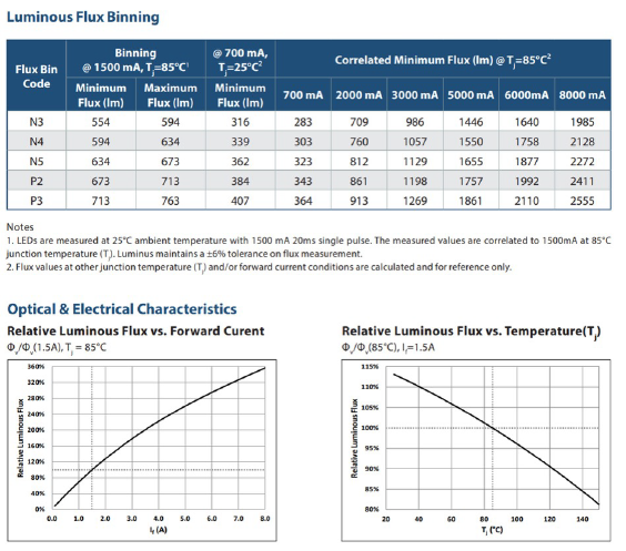 図1.Luminus SFT-40-WxS LEDデータシートからの抜粋