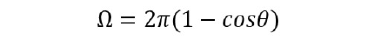 - 断面の開き角が 2θ (FWHM) となる円錐の立体角(ステラジアン単位)は、次の式で表されます。