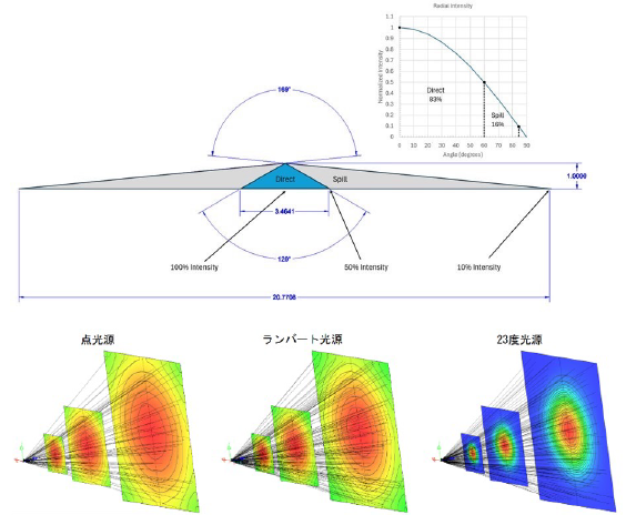 図3.光円錐 – 遠距離場では、すべての光源は計算距離で均一な強度を持つ円錐として近似できます。