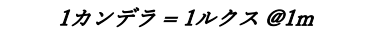 (1ステラジアンは半径1mの単位円の表面積1m2に対する立体角であるから、光源から1m先において1カンデラ(lm/sr)と1ルクス(lm/m2)は等しい、という式)