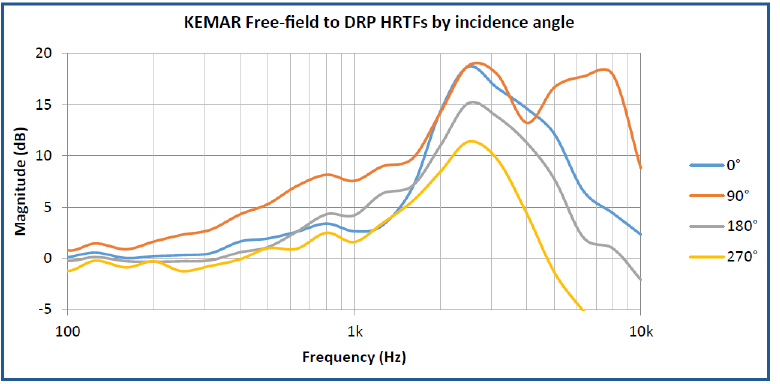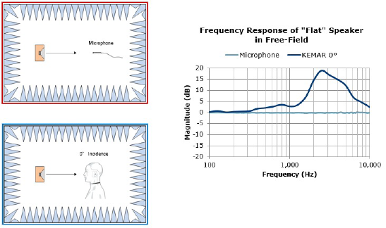 通常の測定マイクロホン(応答がフラット)とHATS(HRTF)の測定結果の違い