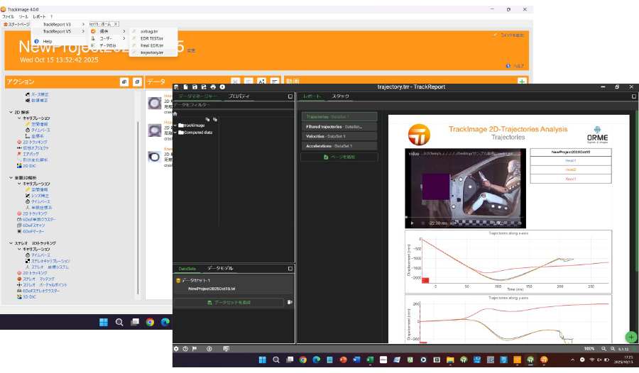 同社の提供する信号処理・解析・レポート作成ソフトウェア トラックレポート Track Report(以下TRR)に解析結果をエクスポートすることで、動画解析・レポート作成を一連化することができ、業務効率化、解析支援ツールとして使用することが可能です。