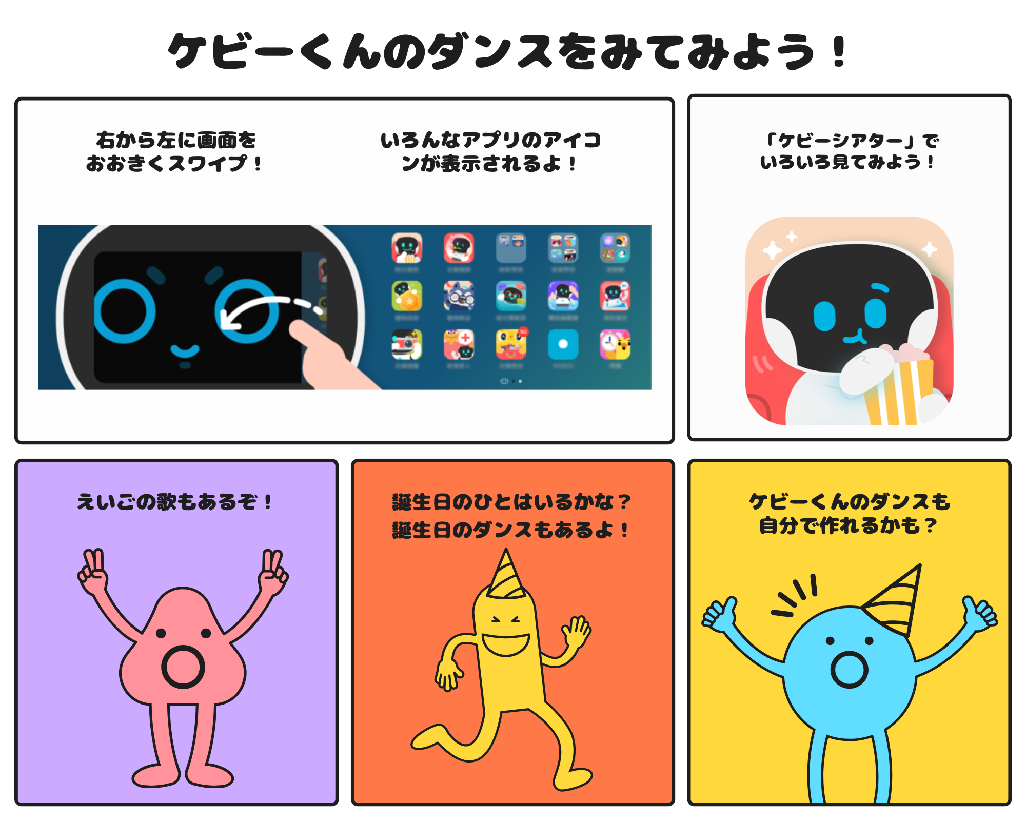 Kebbiの頭や身体を撫でて反応を楽しんだり、ダンスを見たりして、ロボットへの親しみを持ちました。