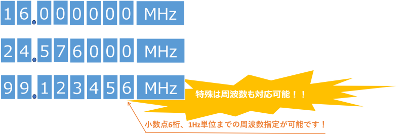 その2、所望の周波数を小数点以下6桁まで書込み設定可能!