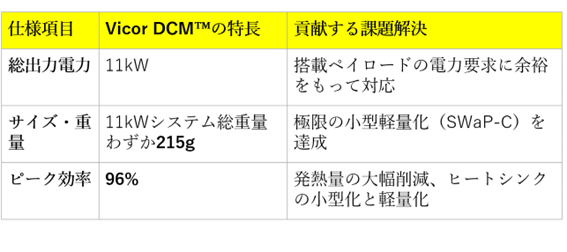 VicorのDCM DC-DCコンバータモジュールは、その独自のパッケージング技術と高効率設計により、HALE UAVが抱える上記の課題を根本から解決し、システムの性能を飛躍的に向上させました。