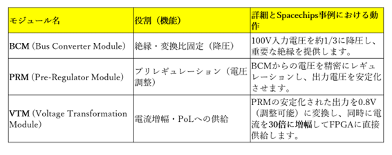 Spacechips社のソリューションに採用されたVicorの放射線耐性製品ラインは、以下の3つの機能モジュールに分かれて動作します。