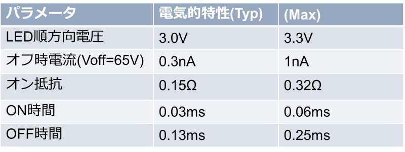 Integense社 独自の技術を使用したPureOptoの特徴を紹介します。一般的にフォトリレーはGaAs LEDが用いられていますが、PureOptoでは GaN LEDを使用しています。