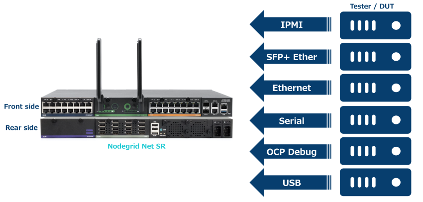 - マルチインターフェース対応: シリアル、USB、イーサネット、IPMIを1台のアプライアンスで収容する。