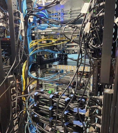 画像:デバイスの乱立により、ラボは専用機器と絡み合ったケーブルの混乱状態に陥っている。