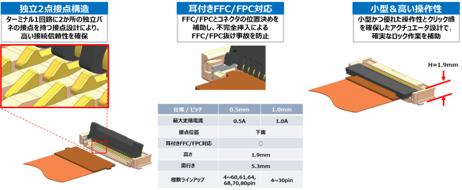 Molexの高信頼性FFC/FPCコネクタ”FD19”シリーズ