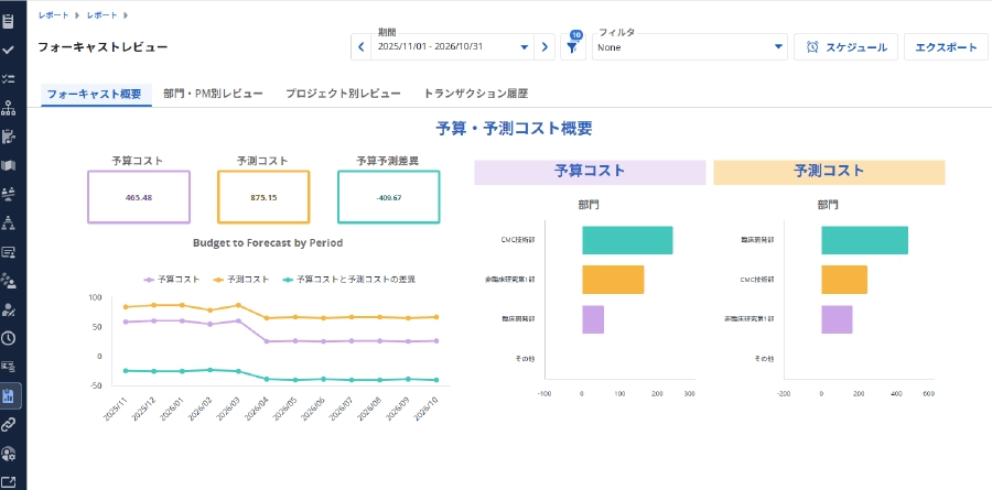 Reporting WorkspaceではClarityの一貫したUI上でレポートの作成、表示が可能
