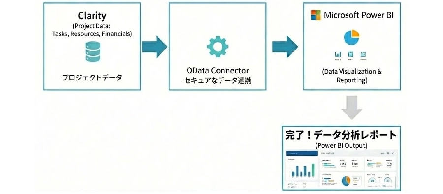 - 主要BIツールへの対応:Power BIやTableauといった世界標準のBIツールをClarityのデータに接続できます。