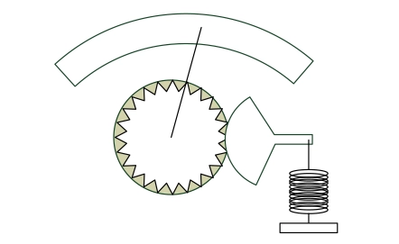 金属管が圧力を受けて変形(膨張・変位)する動きを、指針に伝えて直接圧力を表示します。構造が単純で高精度を必要としない場合に使われます。