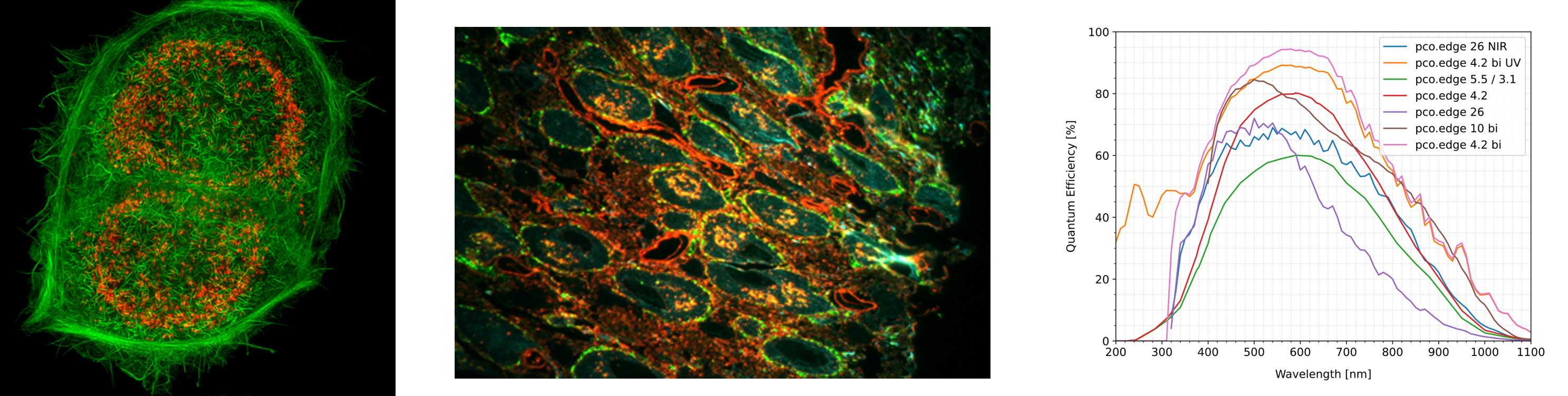 UV領域に感度波長が高いSCMOSカメラもラインアップしております。神経細胞学や
