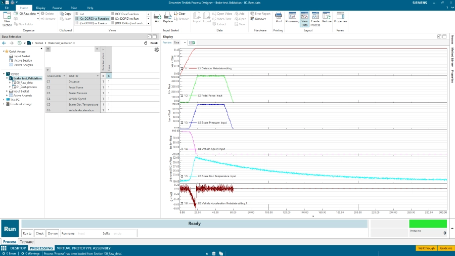図1:ブレーキ性能試験データセットを非常に典型的に備えたSimcenter Testlabソフトウェア