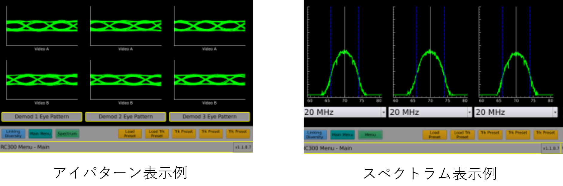 パネルにデュアル7インチ高解像度タッチスクリーンを搭載。アイパターン、コンステレーション、RFスペクトラムを同時に表示しながら、直感的なタッチ操作で設定変更が可能です。
