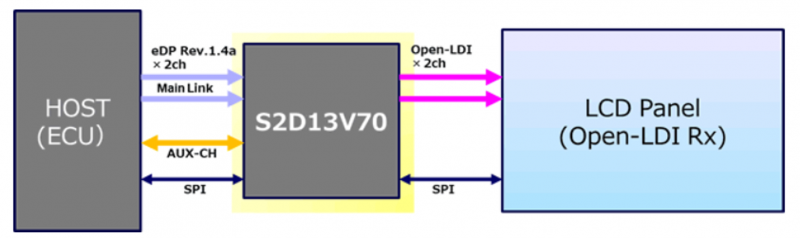 eDPインタフェースを持つホスト(SOC)とOpen LDIインタフェースのディスプレイを接続することが可能となります。