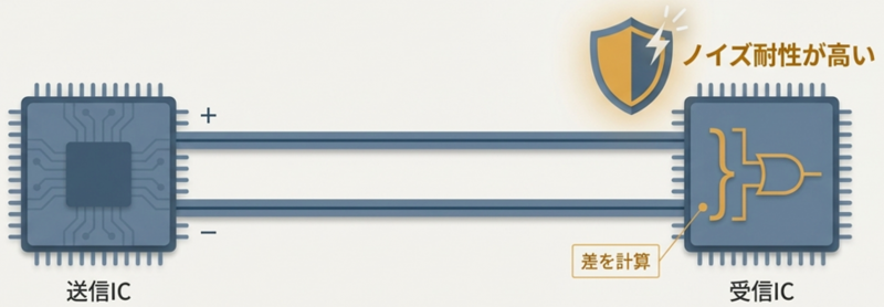 ◇2本の線の「差」でデータを読み取り、ノイズを打ち消す