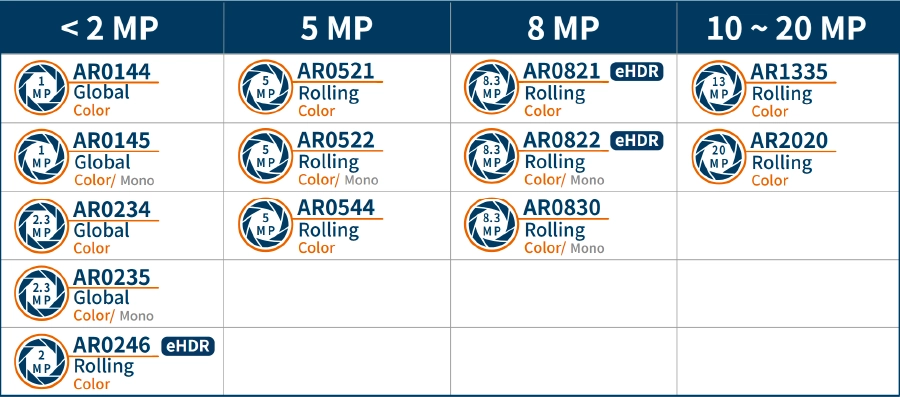 | TEVS-AR0234 | onsemi AR0234 | 2MP | Color | Global | MIPI CSI-2 |