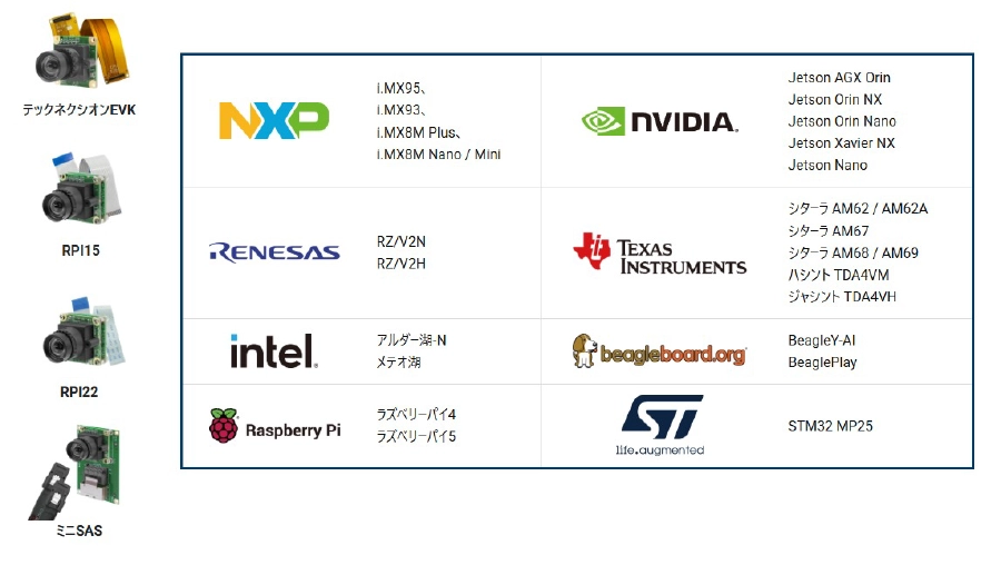 - 対応プラットフォーム: NXP, NVIDIA, Texas Instruments, Intel, Renesas, STMicroelectronics, BeagleBoard, Raspberry Pi