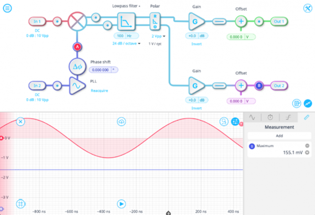 Moku:Proのフェーズメーターは、FPGA上に構築されたデジタル・フェーズ・ロック・ループ(DPLL)アルゴリズムを核としています。最大4チャンネルの入力信号に対し、位相、周波数、振幅を独立かつ超高精度に同時トラッキングします。デジタル領域で全ての処理を行うため、アナログ回路特有のノイズやドリフトを排除し、極めて広いダイナミックレンジと高い堅牢性を実現しています。
