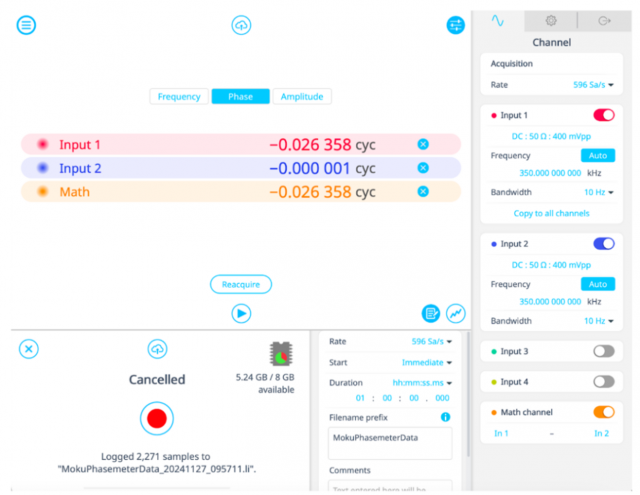 Moku 位相計に組み込まれたデータロガー機器