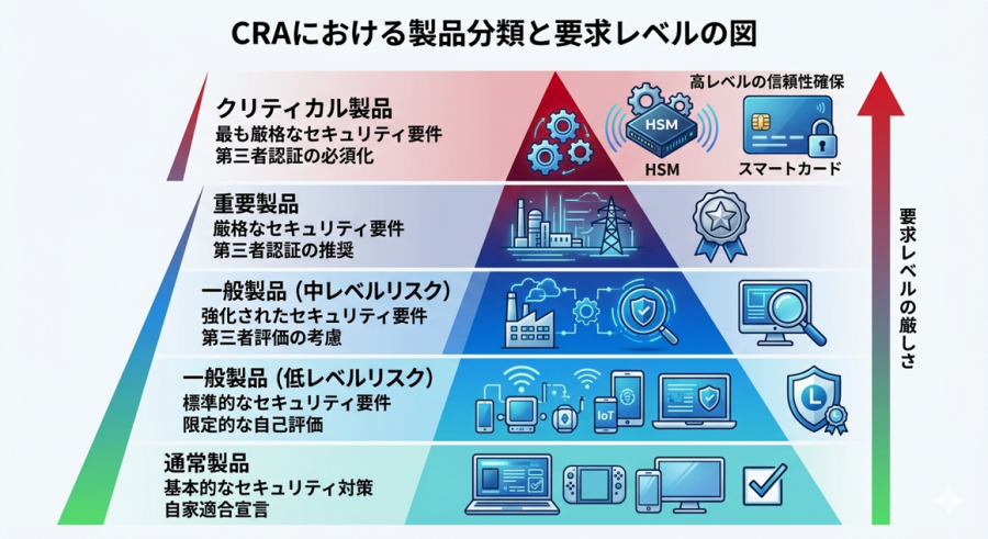 CRAでは製品のリスクレベルに基づいた分類を行っていますが、その中でも社会インフラや高度なセキュリティに関連し、攻撃を受けた際の影響が極めて大きい製品は「クリティカルなデジタル製品(critical products)」として定義され、最も厳格な要件が課されます 。具体的には以下の製品群が該当します。