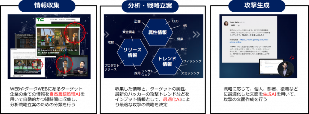 最新の攻撃手法をAIが分析・再現し、従業員や部署ごとに最適化された「本物さながら」の訓練メールを自動生成します。