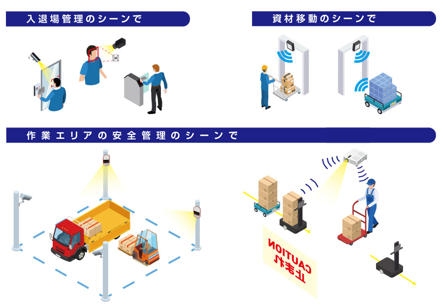 入退場管理や物品移動の管理、現場の安全確保のシーンでの課題解決に貢献します