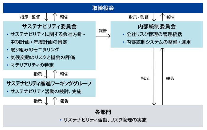 当社では、以下の推進体制のもとサステナビリティに関わる方針や計画を策定し、実行しています。