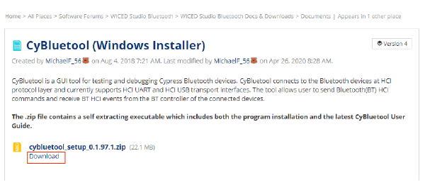 インフィニオン テクノロジーズ社のアカウントでログイン後、CyBluetool ダウンロードサイト よりダウンロードします。