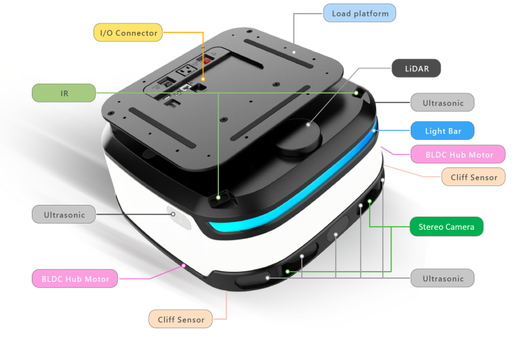 加えて、eYs3D社のステレオカメラも搭載されています。同社の強みである3D深度認識技術により、AMR01-Cは周囲の障害物を高精度に検知し、複雑な環境下でもより高度な自律移動を可能にしています。